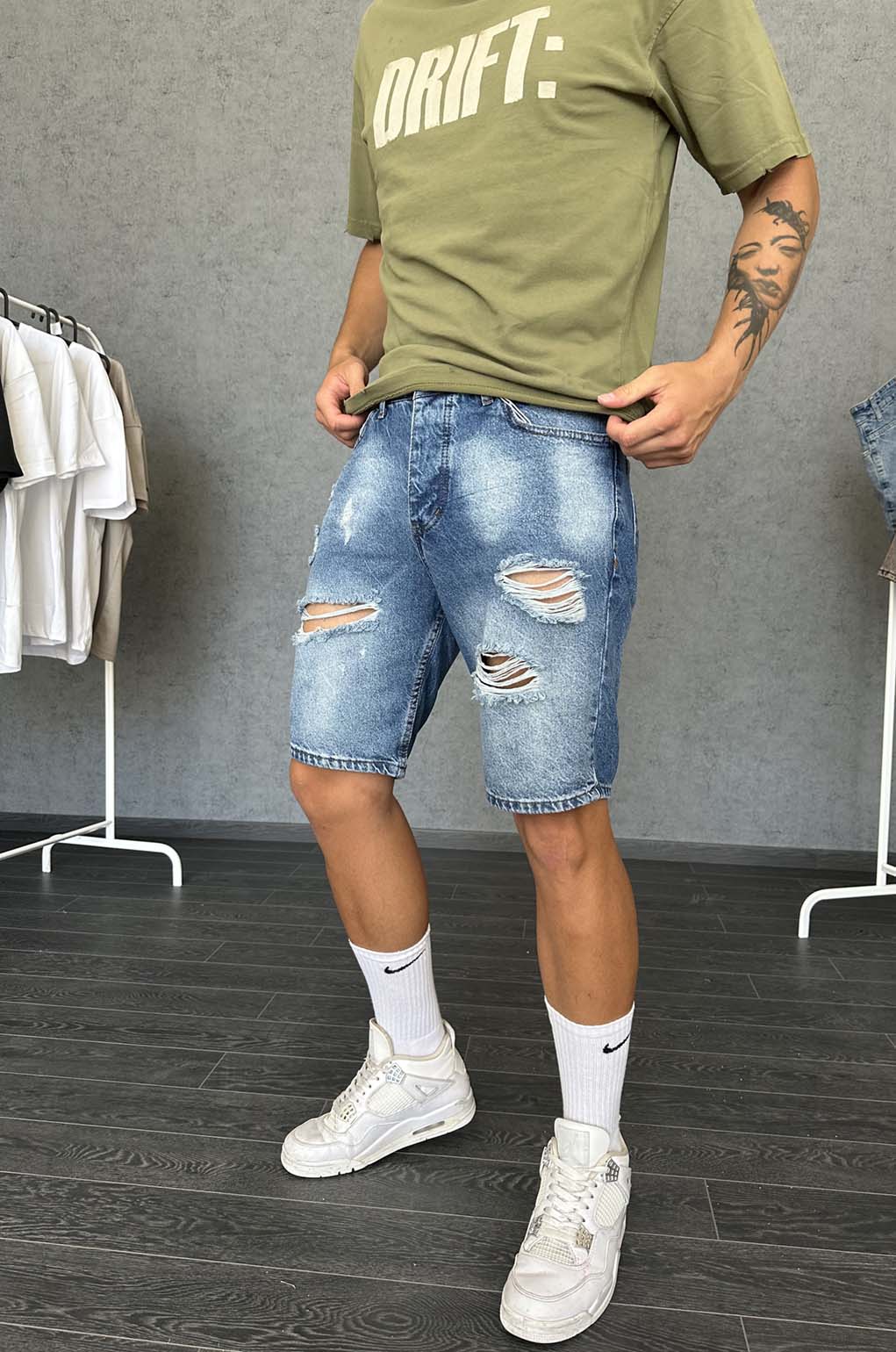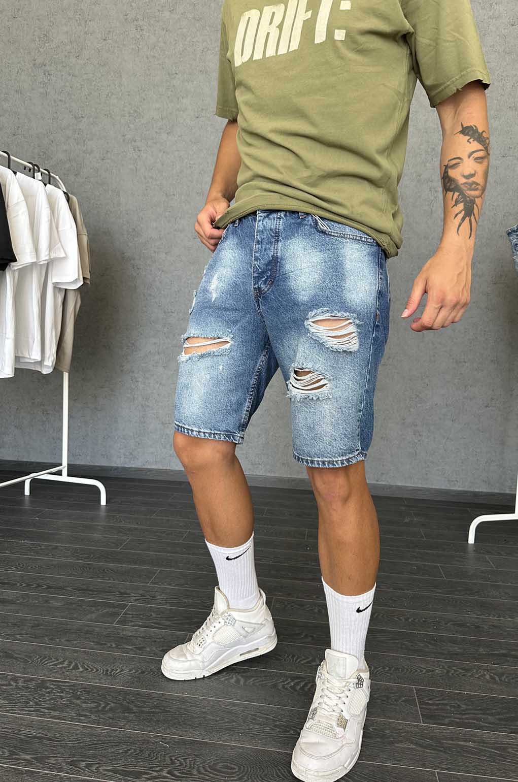 Βερμούδα Τζιν κανονική γραμμή σε μπλε χρώμα με σκισίματα