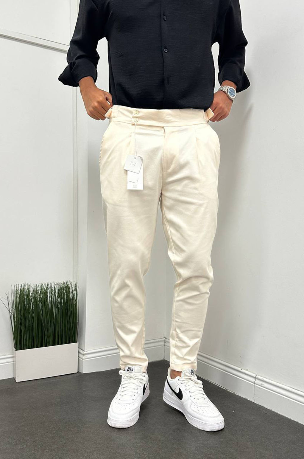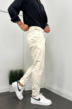 Υφασμάτινο Παντελόνι Chinos σε κρεμ χρώμα