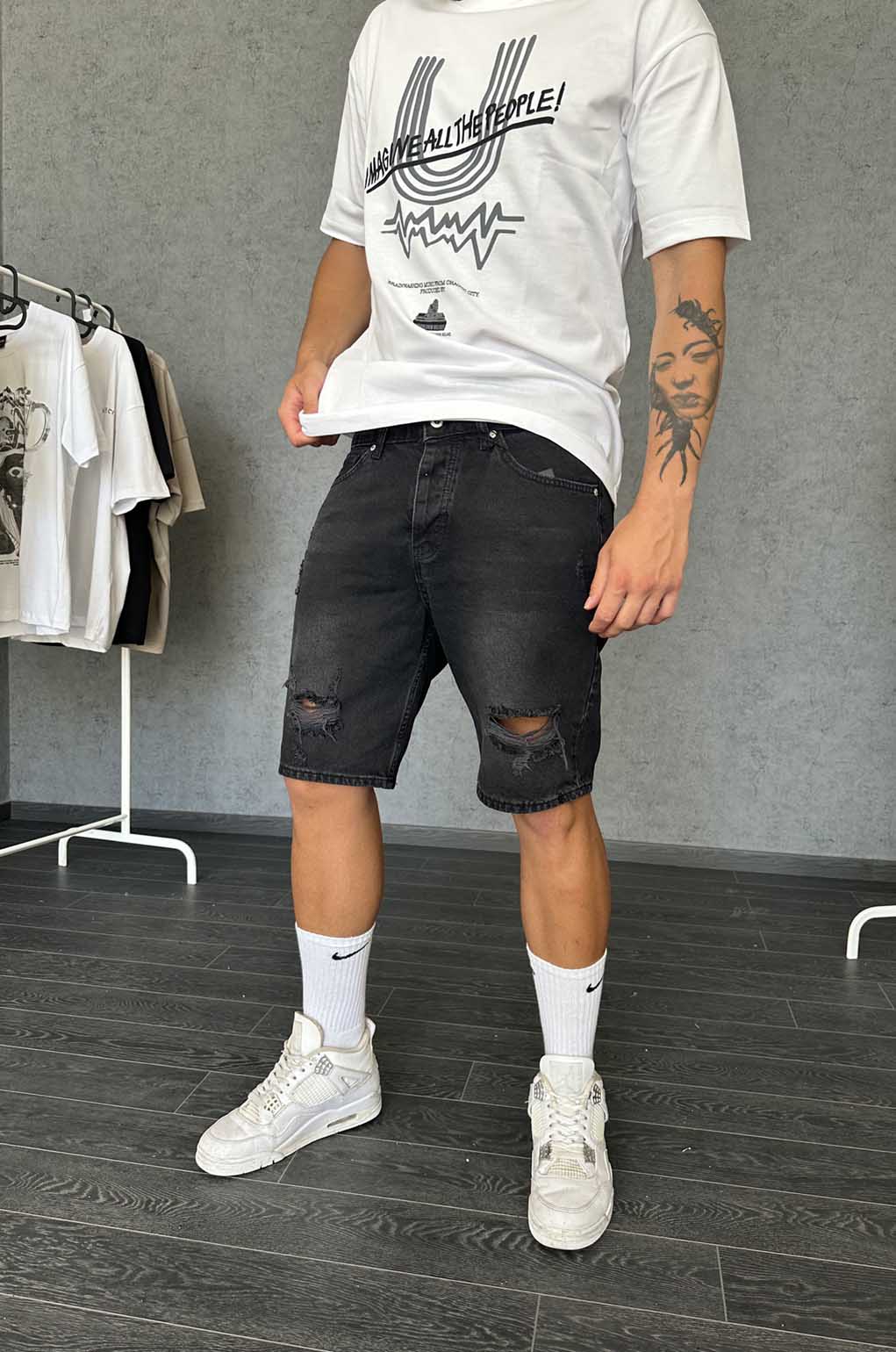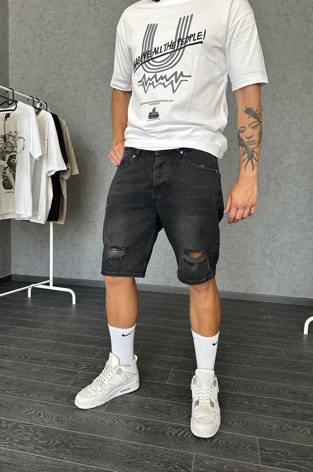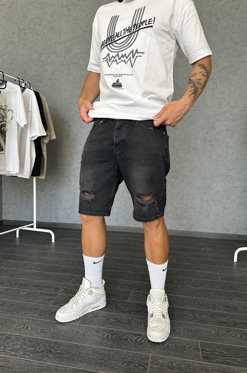Jean Βερμούδα Μαύρη κανονική γραμμή σε μαύρο χρώμα με σκισίματα