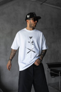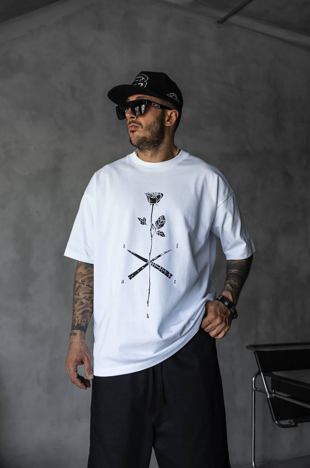 Λευκό οversized t-shirt από 100% βαμβάκι με μοναδικό print στο στήθος