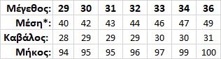 Μεγεθολόγιο (cm)