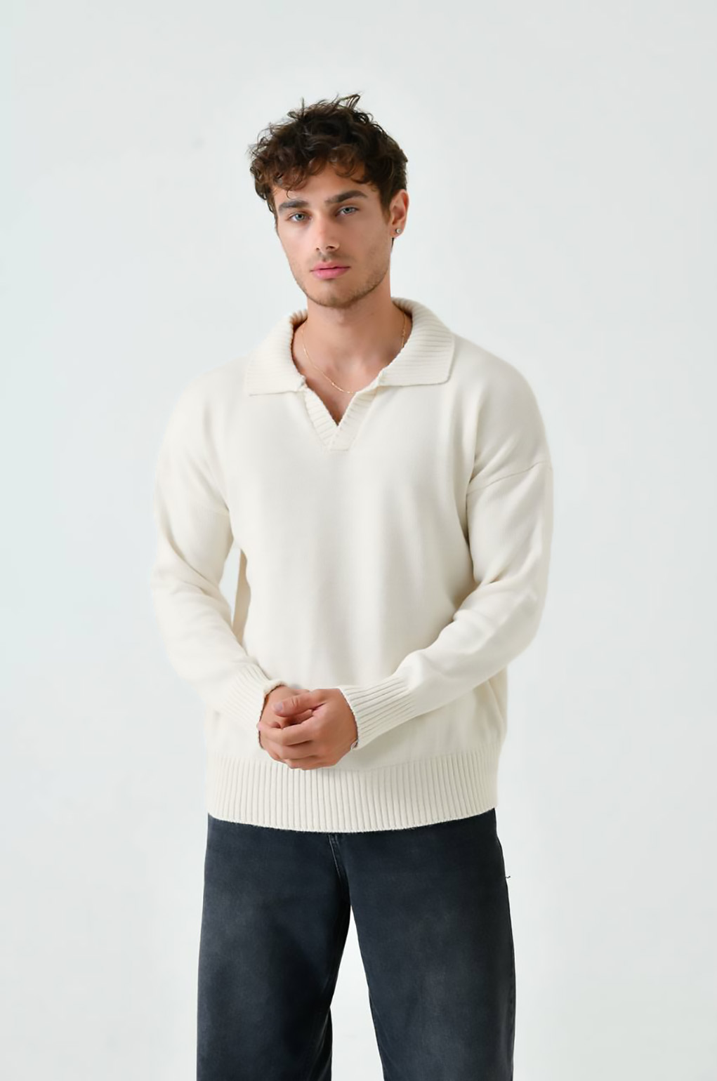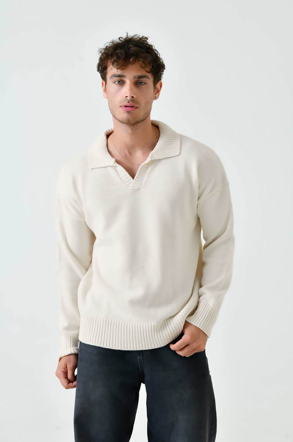 Πλεκτή μπλούζα σε εκρού χρώμα με γιακά