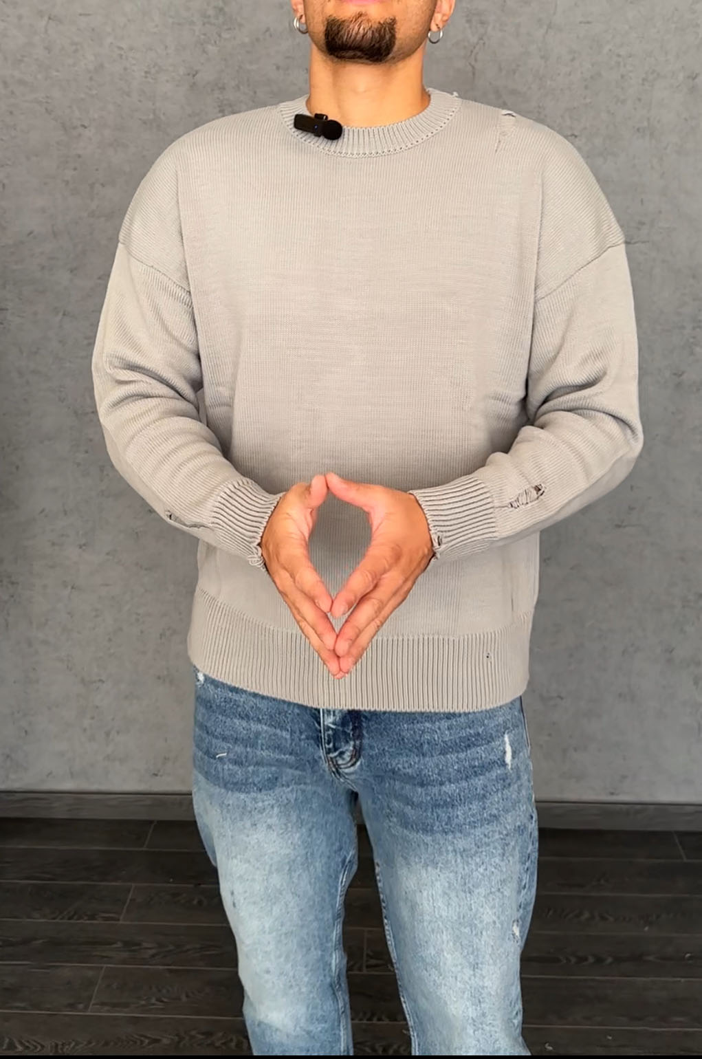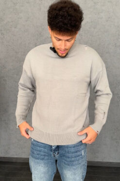 Πλεκτή Μπλούζα σε γκρι χρώμα με γιακά