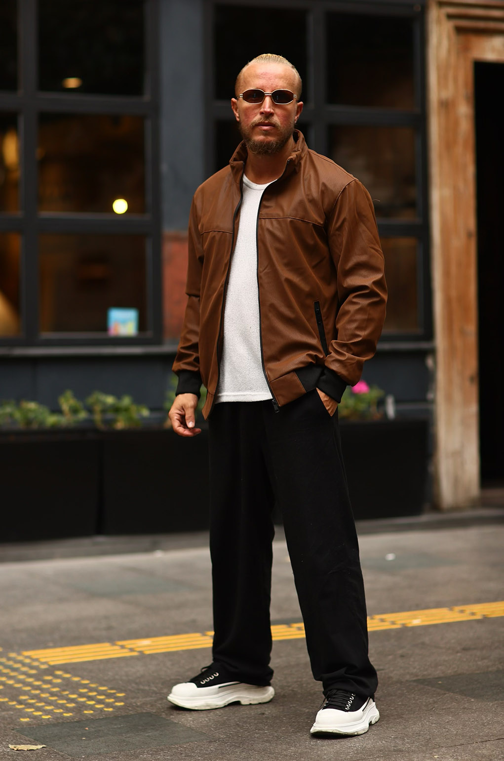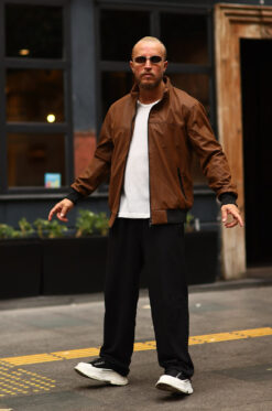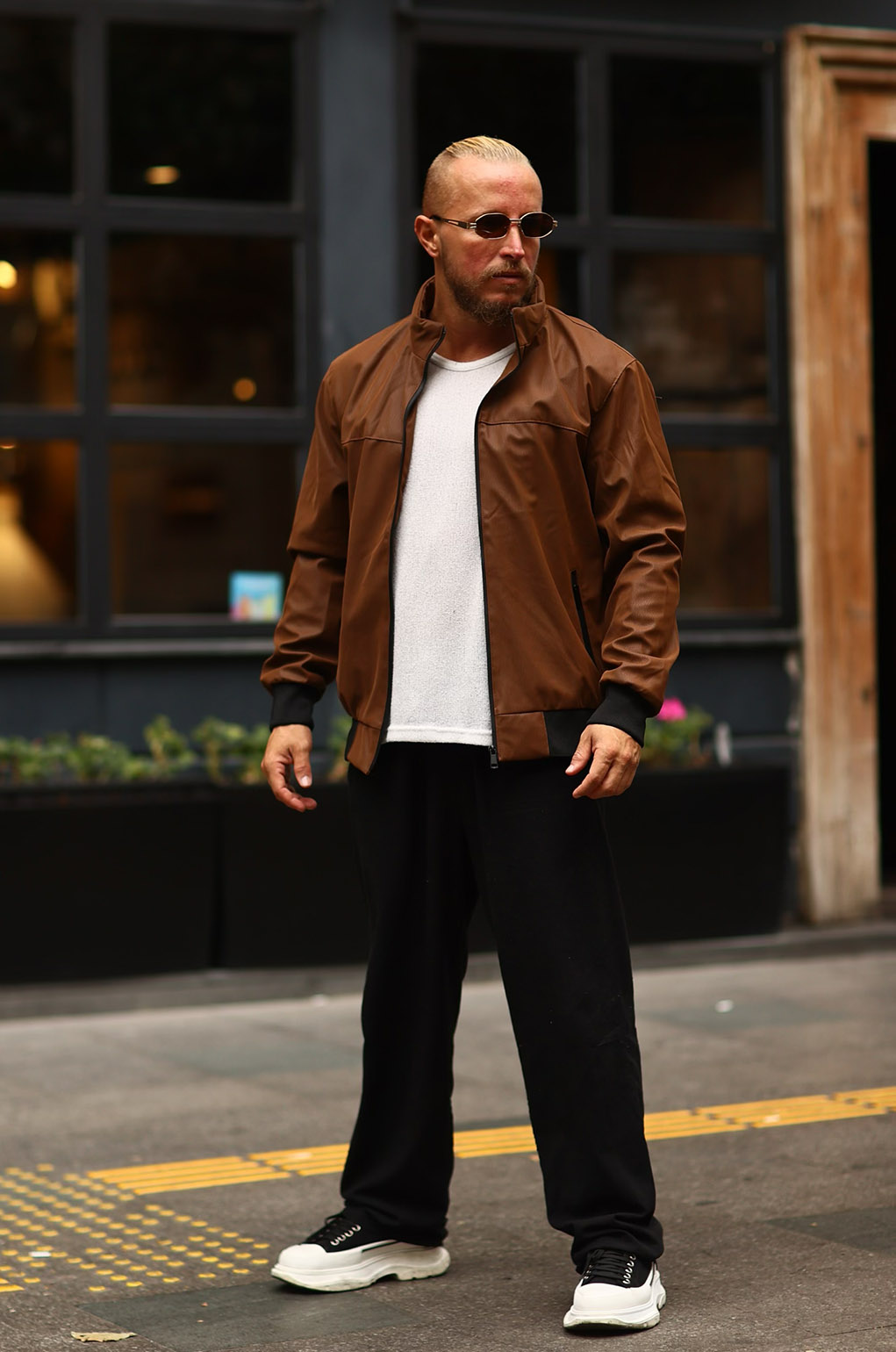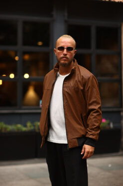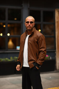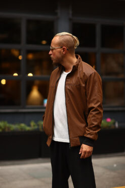 Ζακέτα δερματίνη σε ταμπά χρώμα